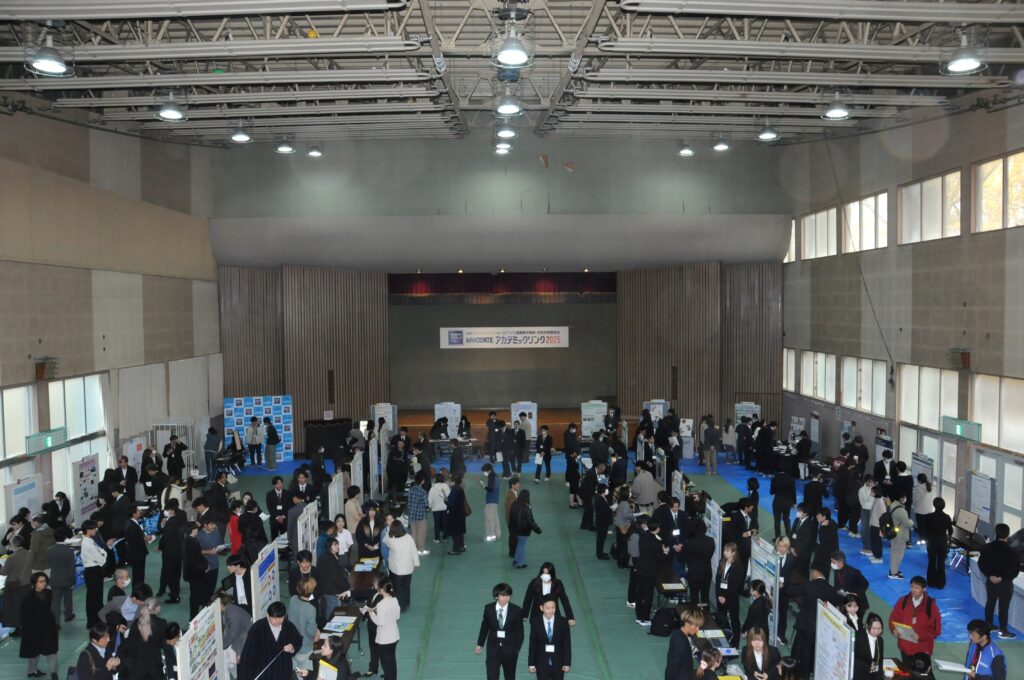 当日は、加盟校8校のほか、弘前・青森・長万部の大学や市内の高等学校、企業・団体などが参加し、合わせて60ブースのポスター発表と、6チームのステージ発表が行われ、一般来場者、出展者及び関係者合わせて約500名を超える、多くの方にお越しいただきました。