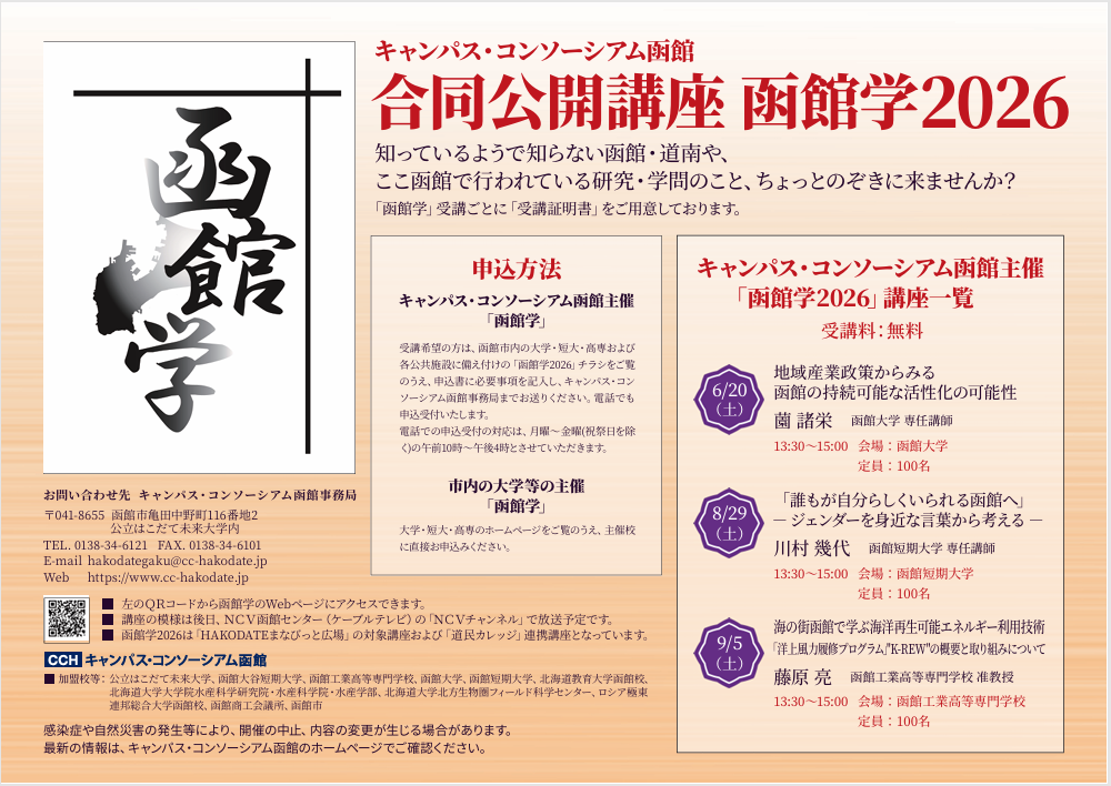 詳細はこちらをご覧ください。>合同公開講座 函館学